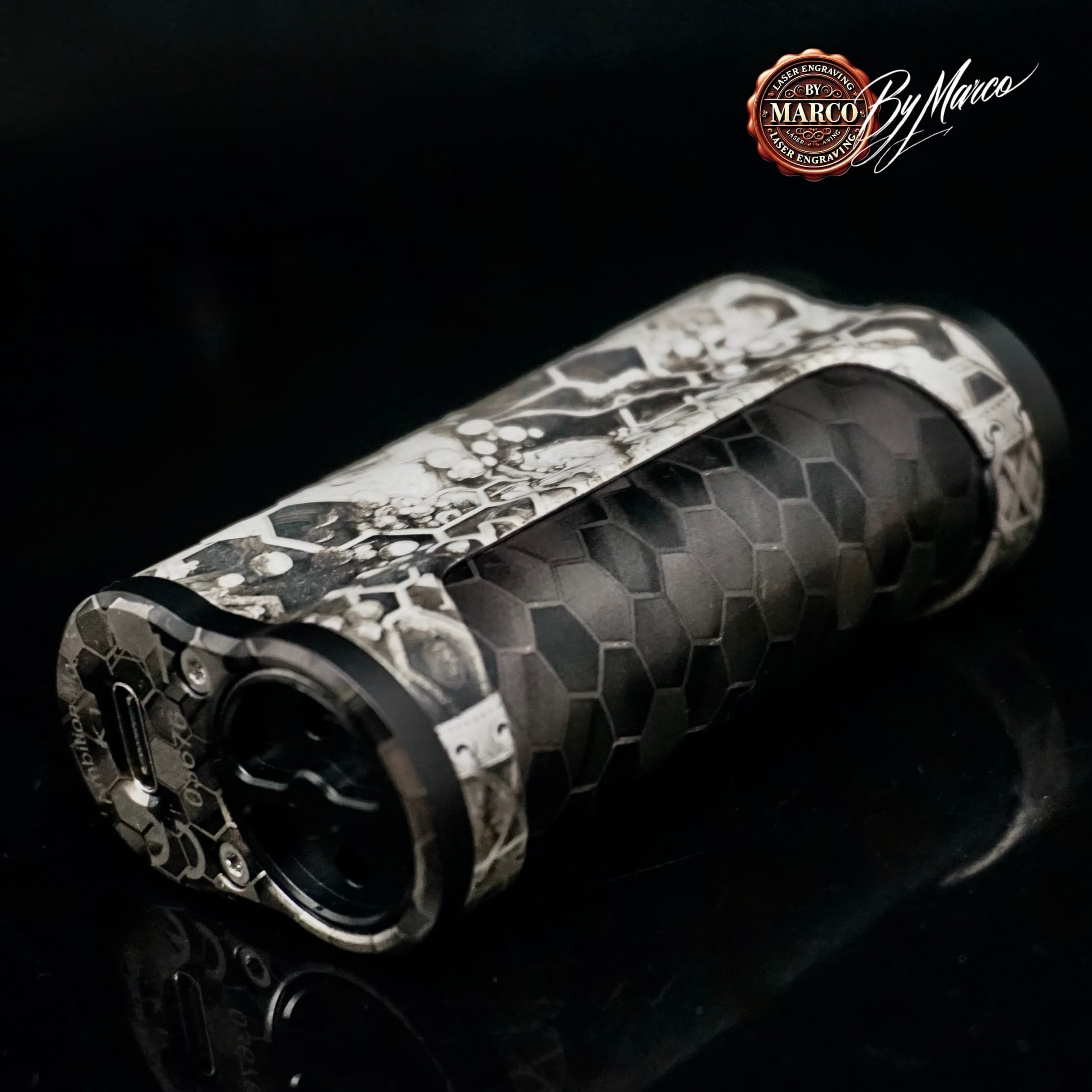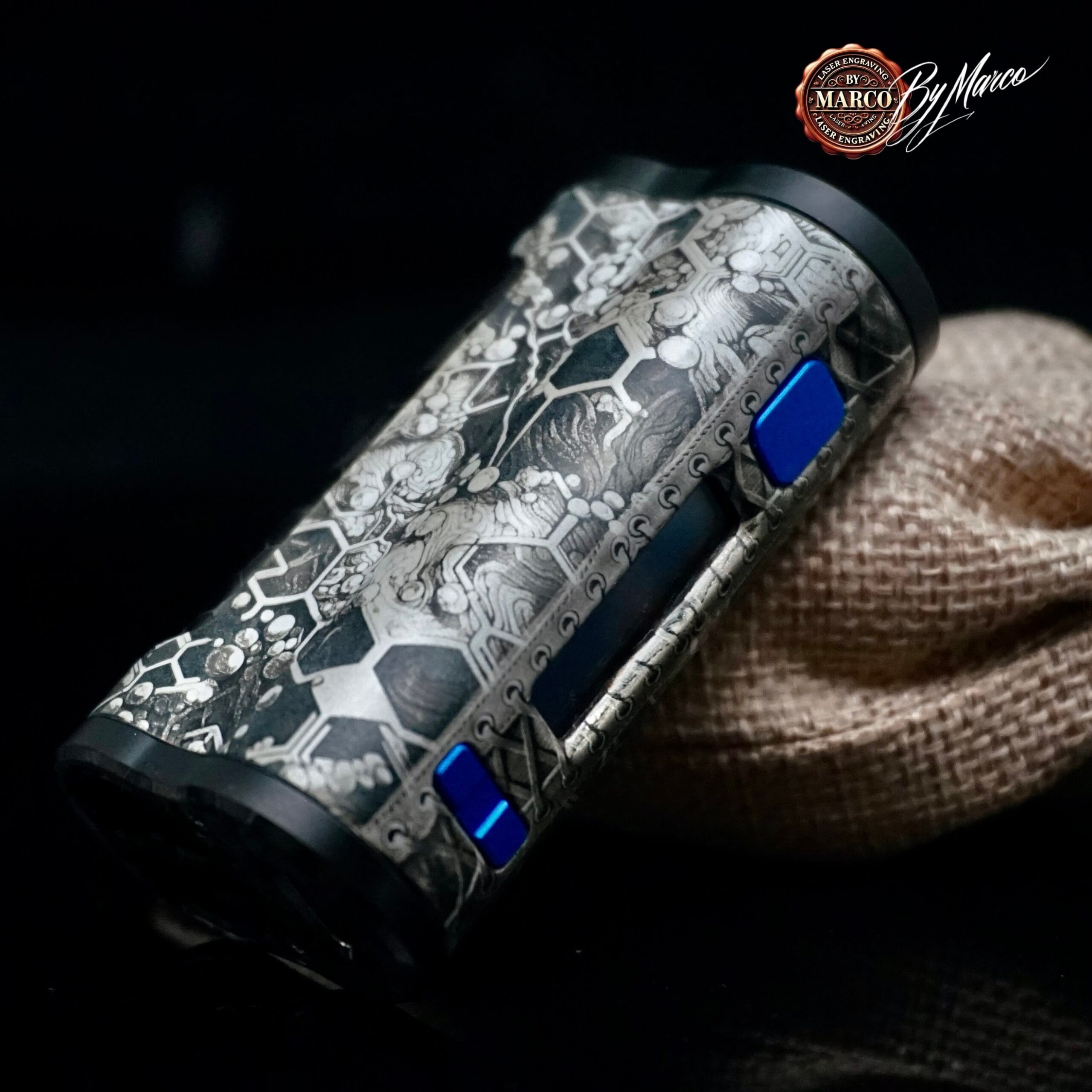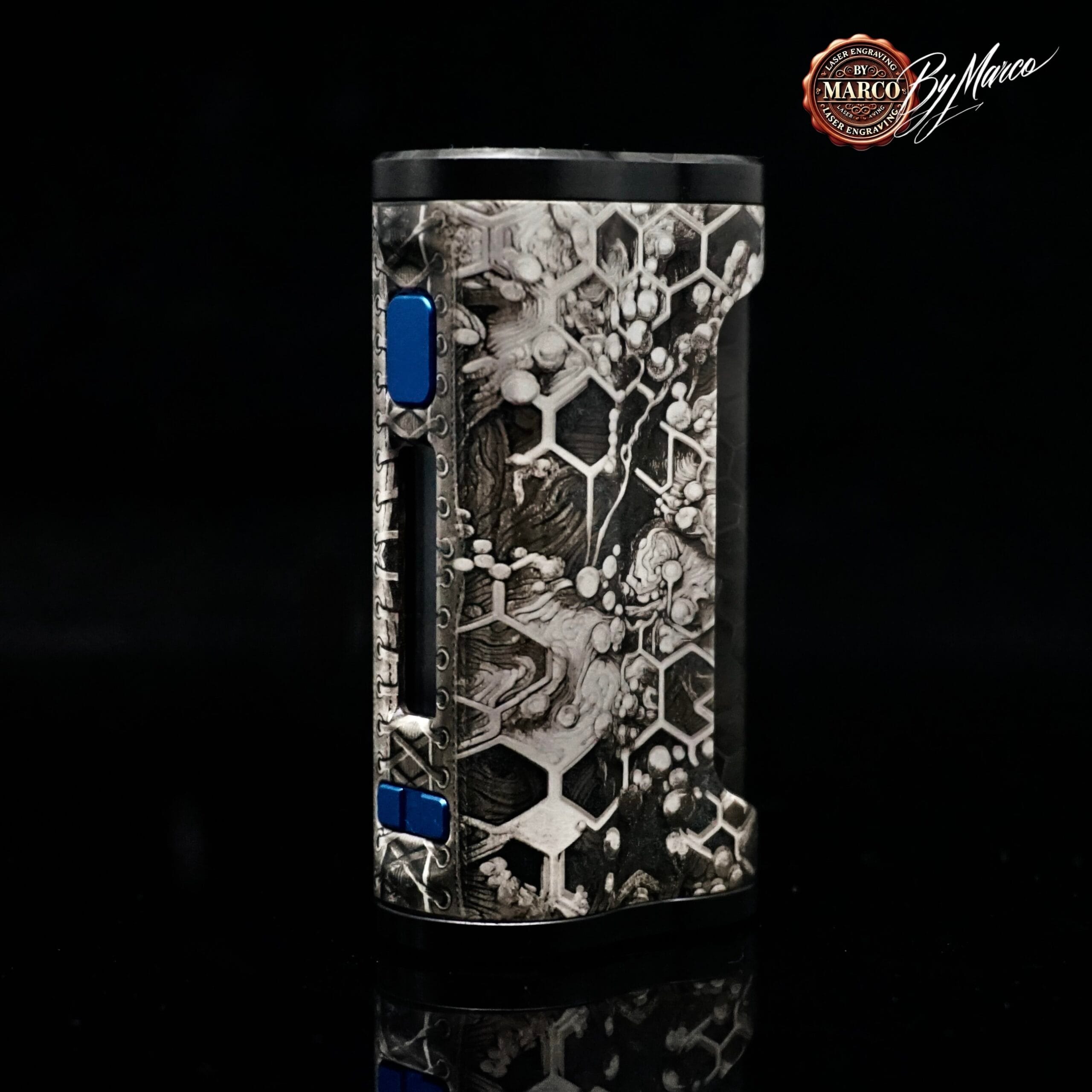 La K1 Hive Relic – ArtBox By Marco nasce dall’idea di trasformare una box compatta in un oggetto visivamente forte, ricco di materia, ritmo e profondità.