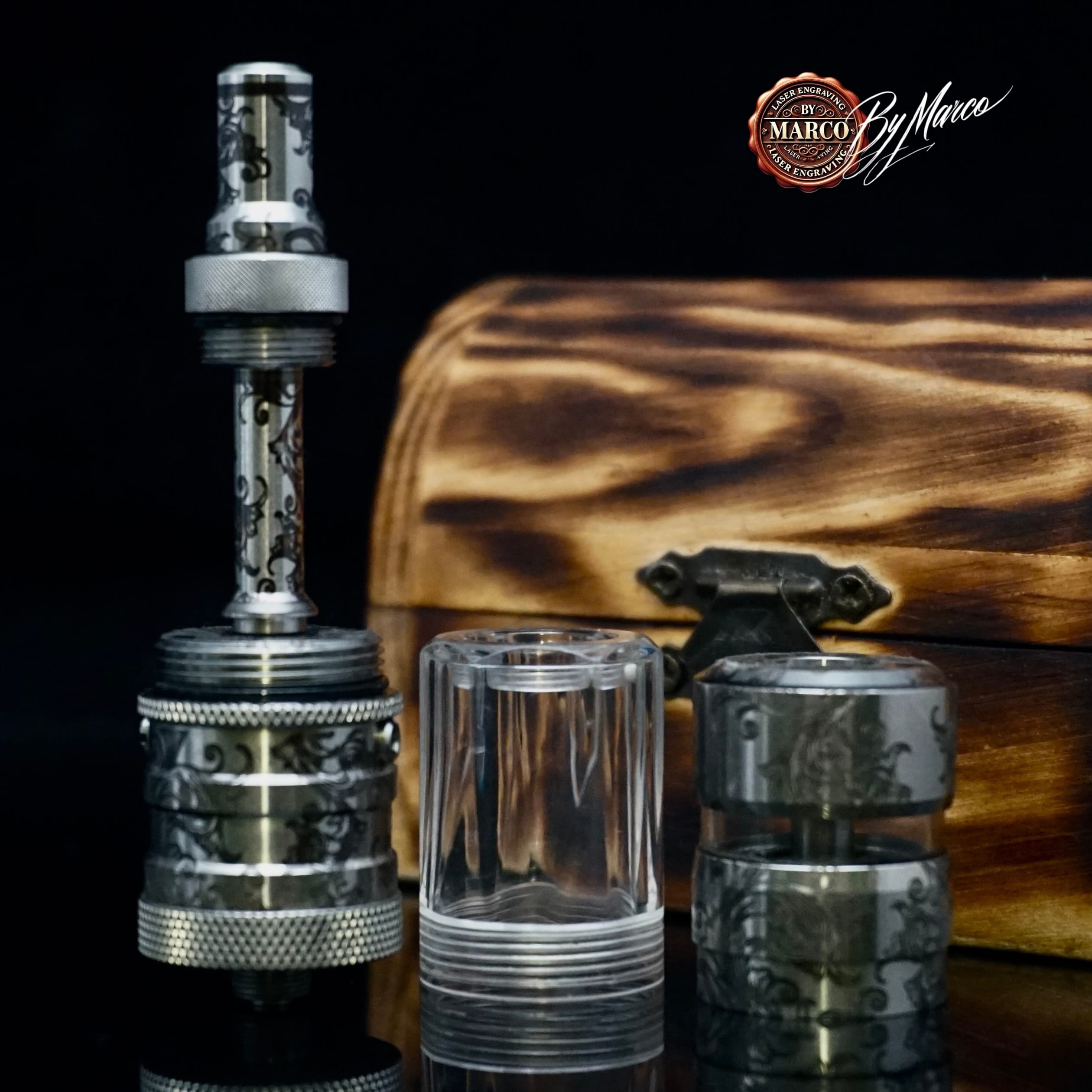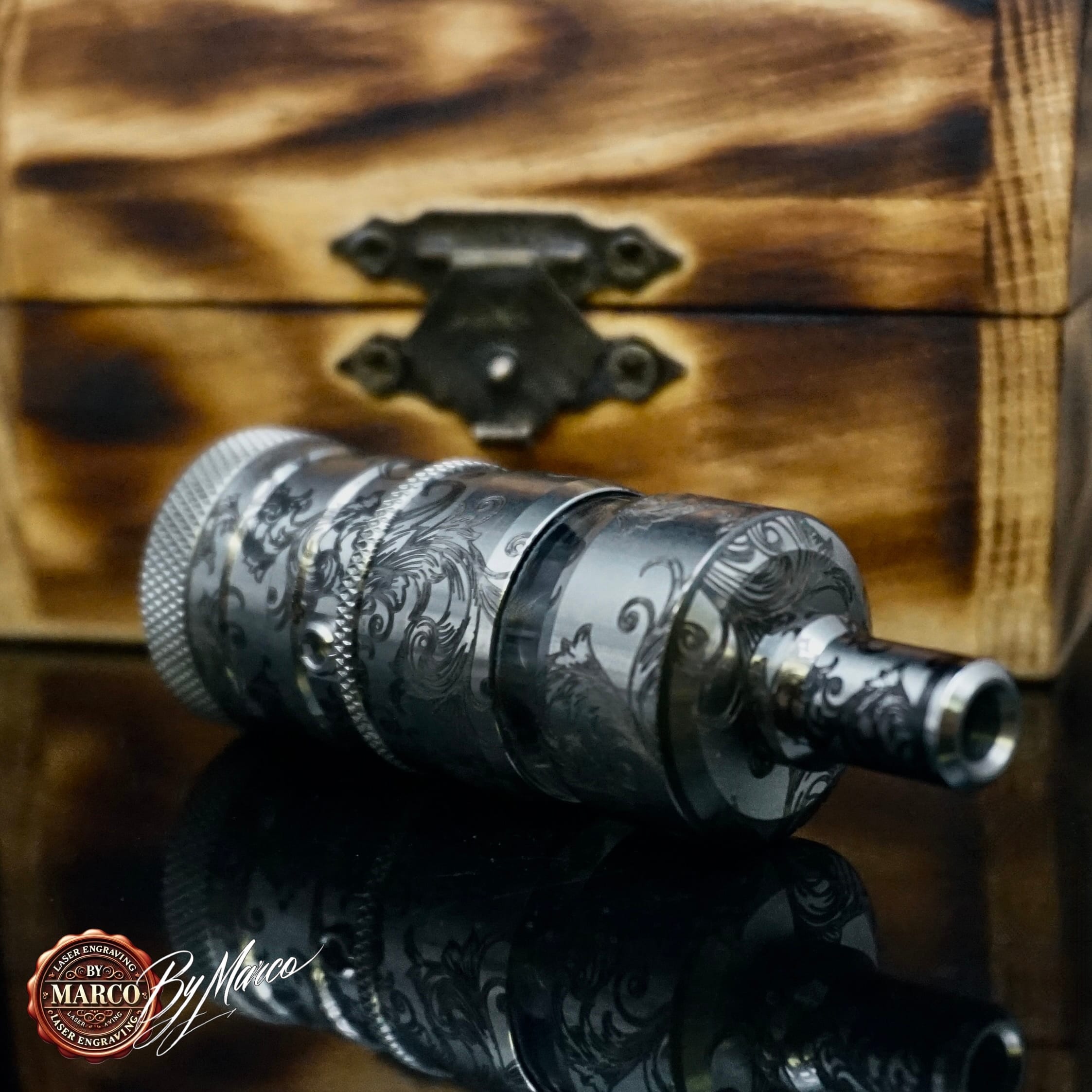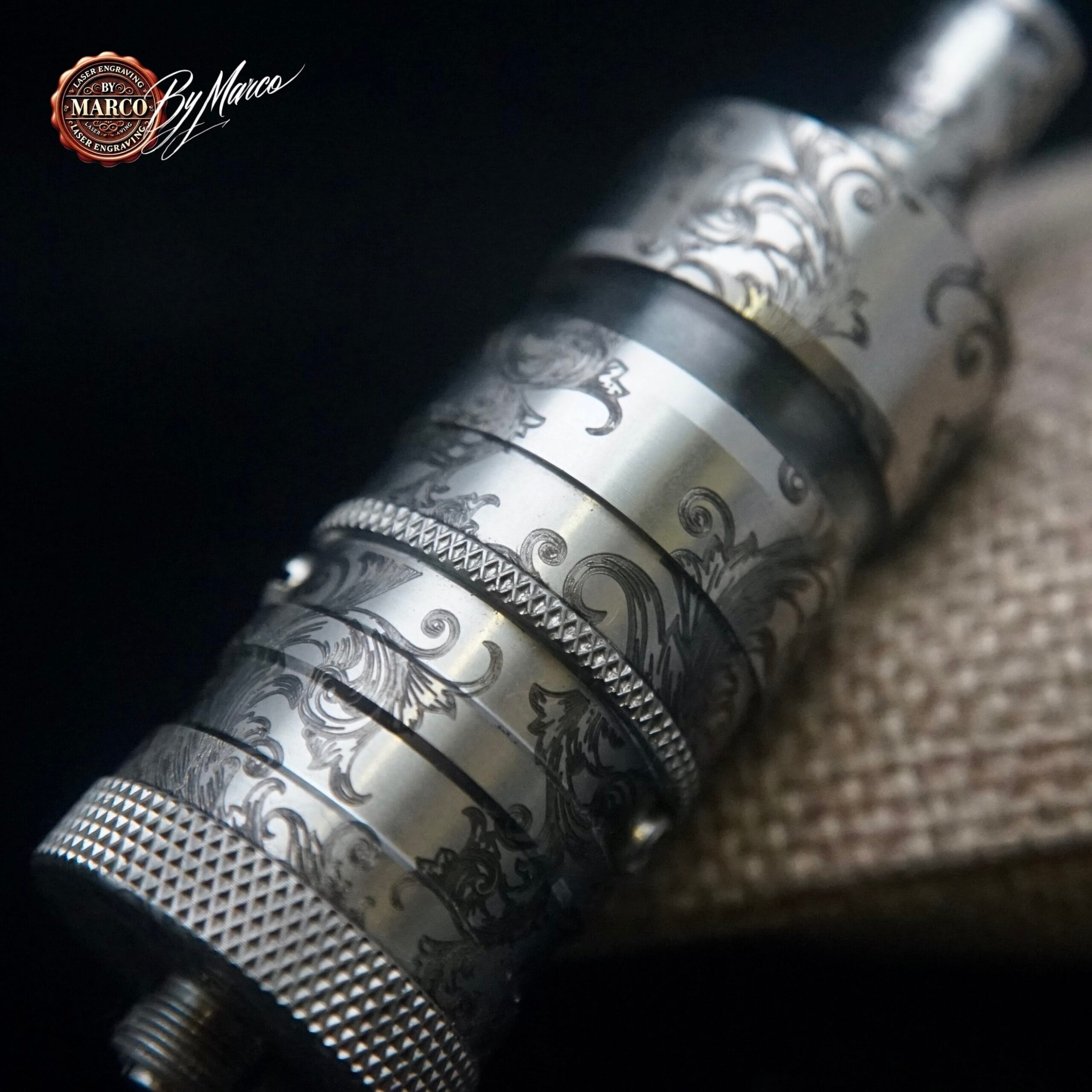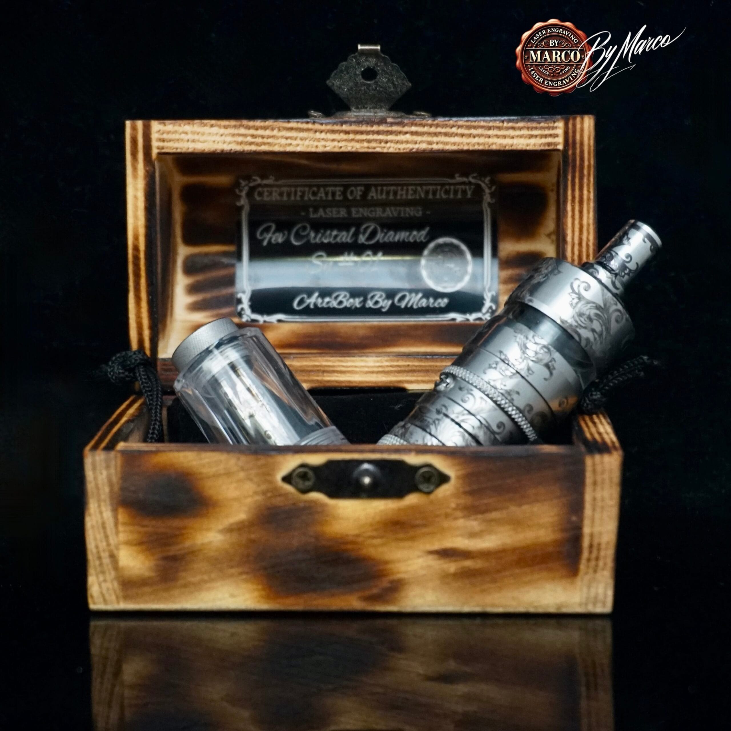 Questa creazione ArtBox By Marco è un lavoro di personalizzazione estetica artigianale realizzato su base originale. Ogni incisione viene studiata per valorizzare il prodotto, renderlo riconoscibile e trasformarlo in un pezzo esclusivo destinato a chi apprezza lavorazioni decorative, dettagli e identità visiva.