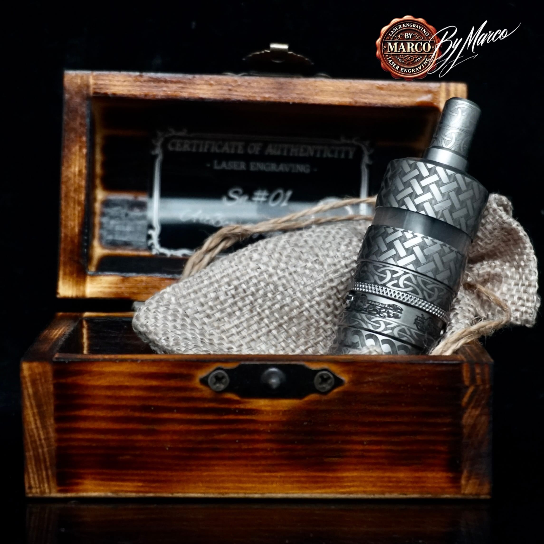 Come in ogni lavorazione ArtBox By Marco, il valore del pezzo non risiede soltanto nell’estetica finale, ma anche nella filosofia con cui viene realizzato. L’obiettivo è creare qualcosa che sia immediatamente riconoscibile, personale e lontano dalla standardizzazione dei prodotti in serie. Ogni incisione viene pensata per valorizzare la forma originale dell’atomizzatore, rispettandone il carattere ma aggiungendo un livello ulteriore di personalità e presenza.