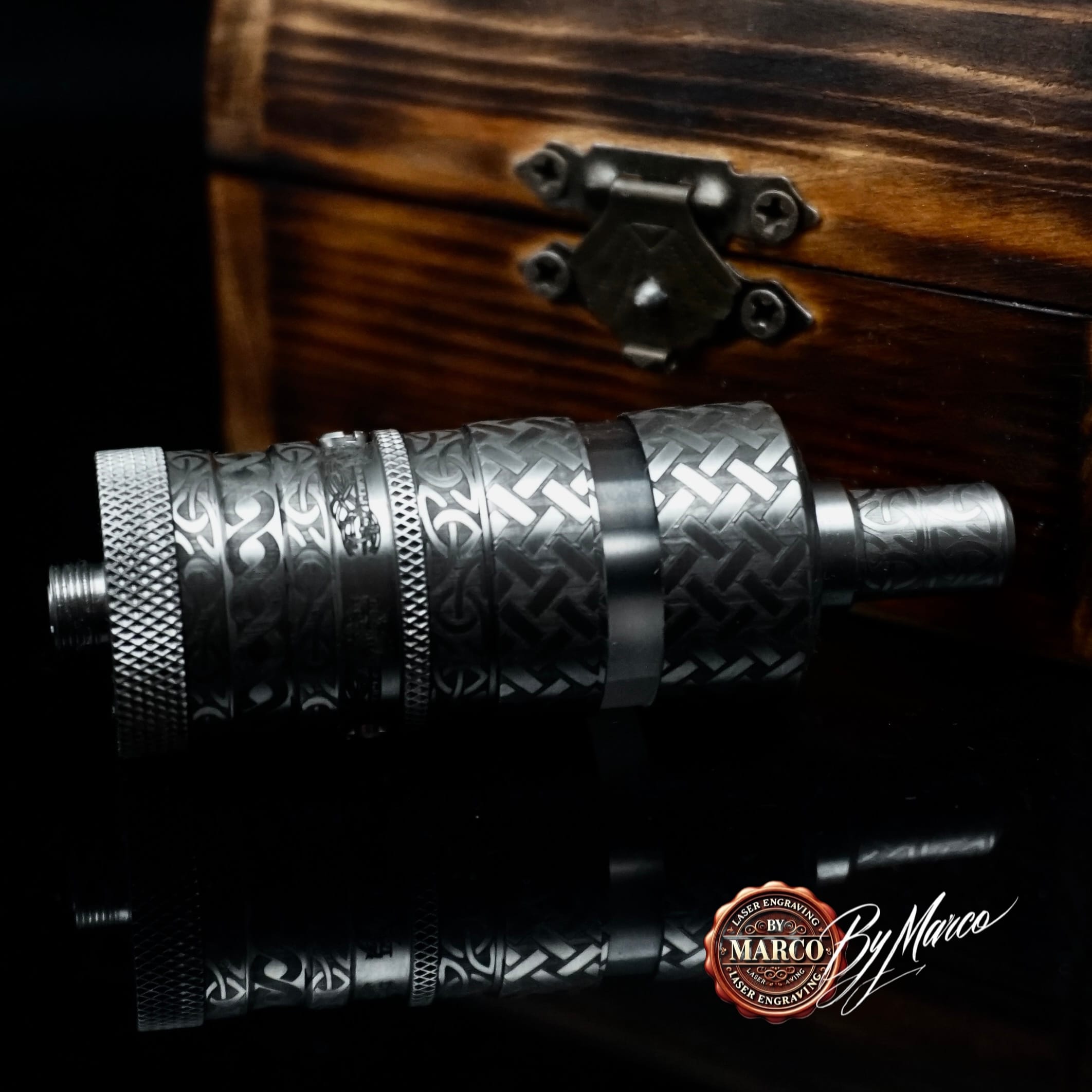 Il FeV ArtBox By Marco nasce dalla volontà di portare il concetto di atomizzatore personalizzato su un livello più alto, trasformando una base già nota e apprezzata in un oggetto dal linguaggio estetico più ricco, deciso e personale. In questa realizzazione, il metallo non viene semplicemente decorato: viene reinterpretato attraverso una lavorazione artigianale studiata per generare profondità visiva, presenza scenica e continuità stilistica.