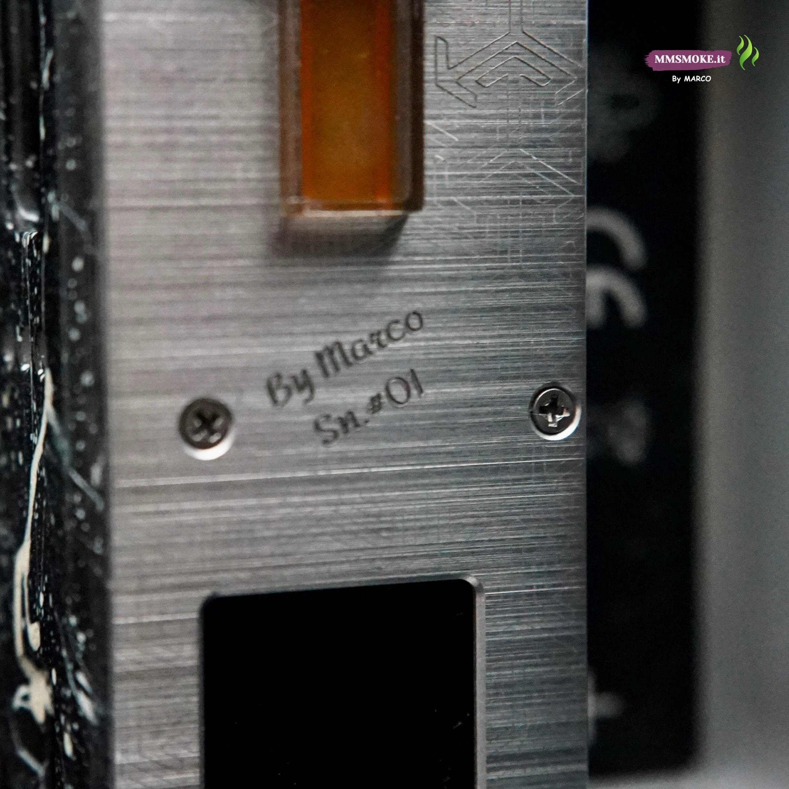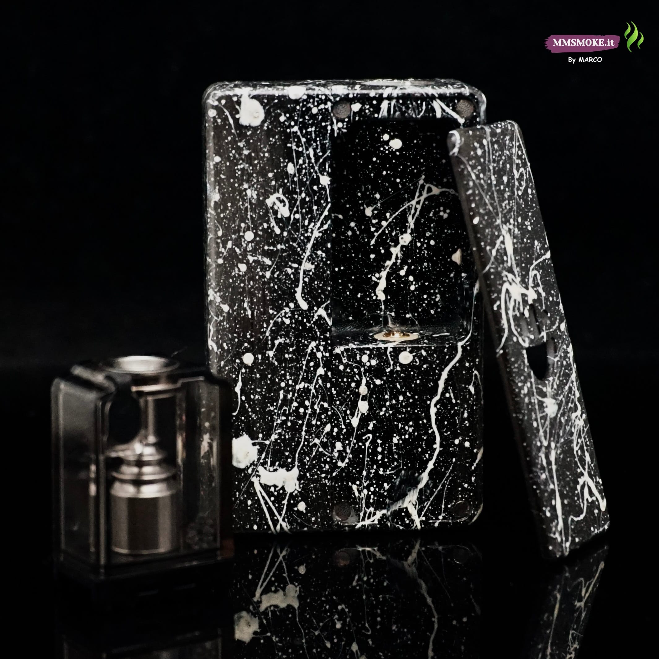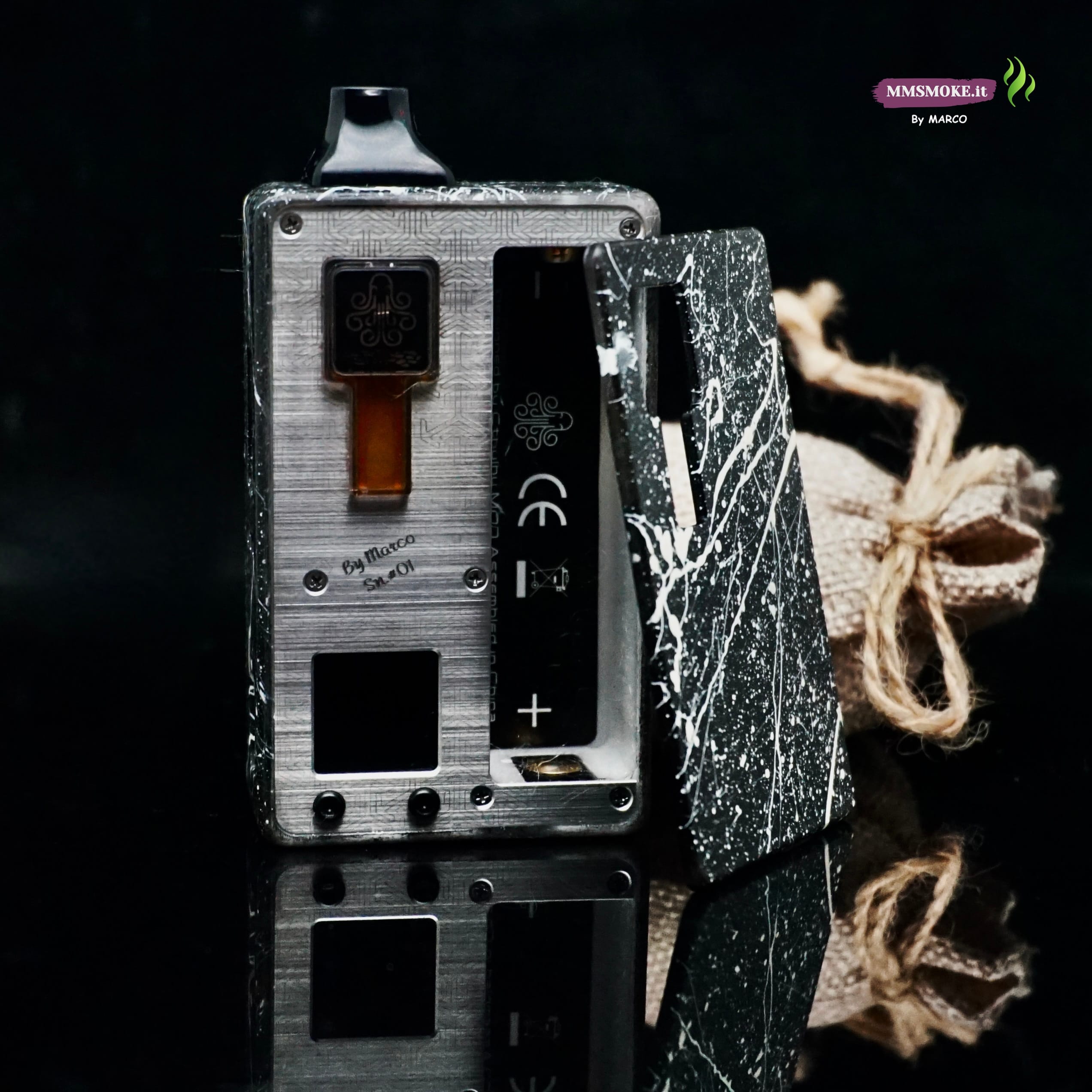 Un pezzo unico e non più reperibilecon numero seriale Sn.#01, fonde arte e ingegneria, nato dalla trasformazione della classica Cthulhu AIO DNA 80C in Derlin bianca. Questa versione personalizzata è stata interamente rivisitata per diventare una vera opera da collezione. La parte interna in alluminio è stata prima incisa e rifinita, mentre l’esterno in Derlin è stato trattato con una tecnica esclusiva: i pori del Derlin sono stati aperti e impregnati di resina nera, per poi essere arricchiti da schizzi bianchi applicati manualmente in modo del tutto casuale. Ogni colpo di colore è irripetibile e rende questa box diversa da qualsiasi altra esistente.