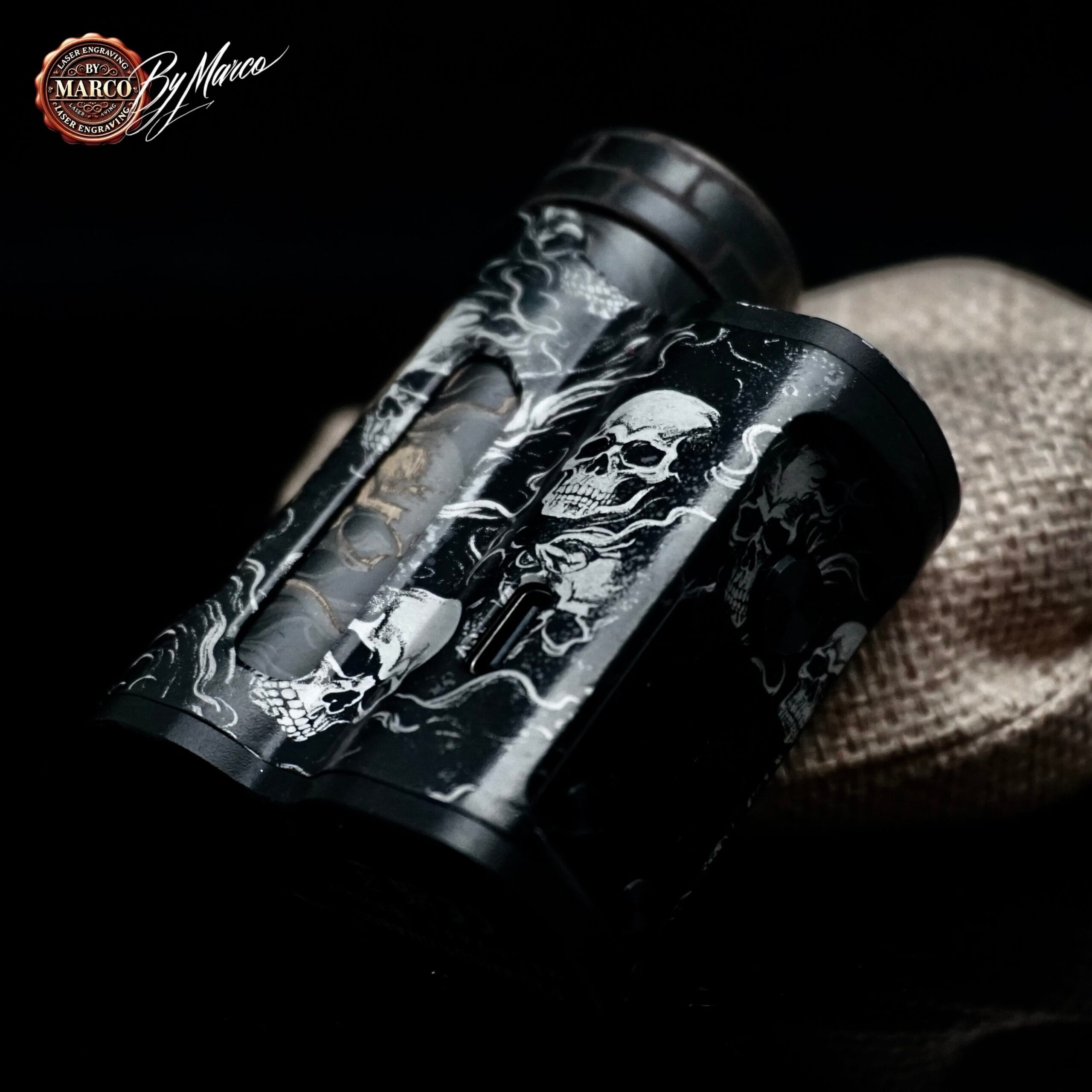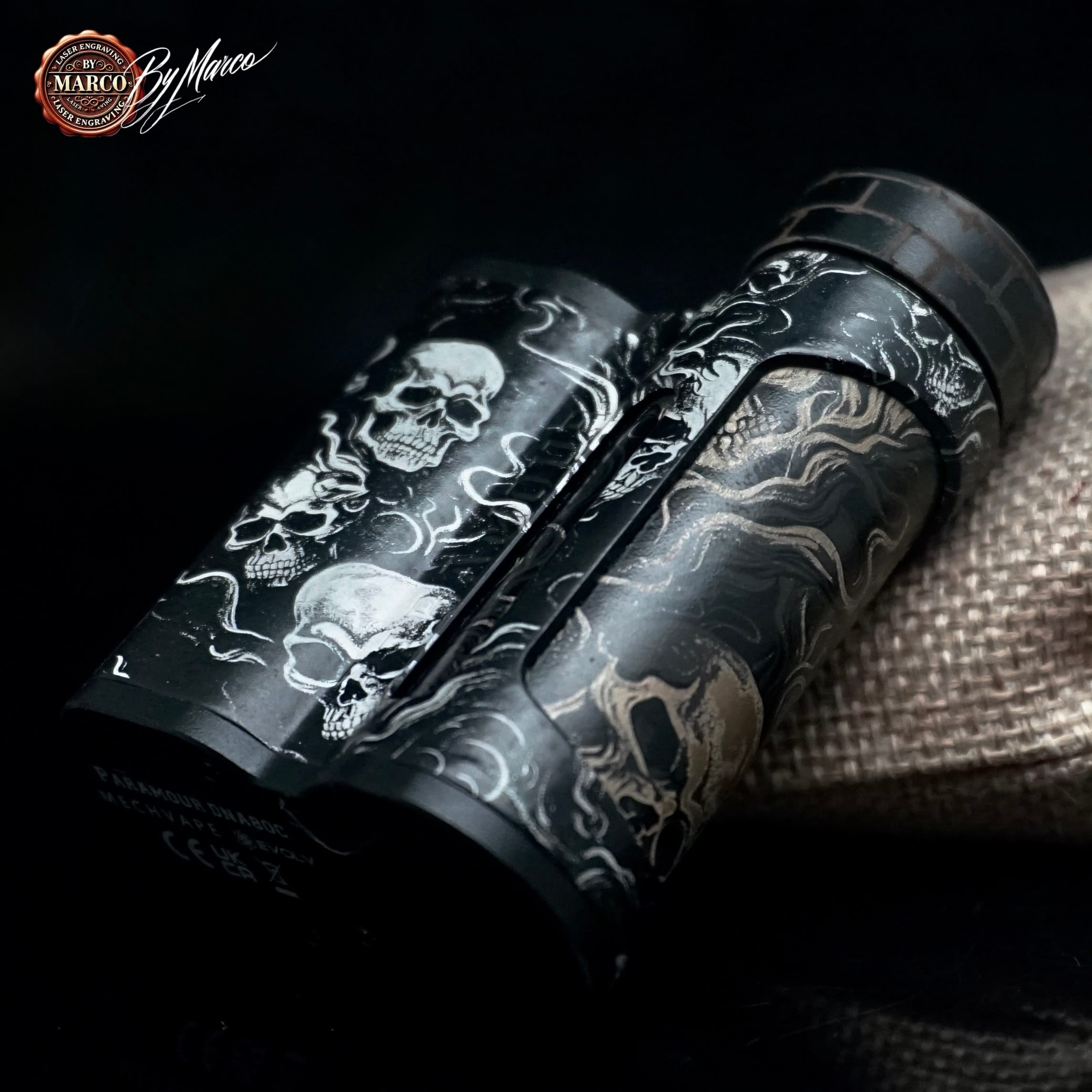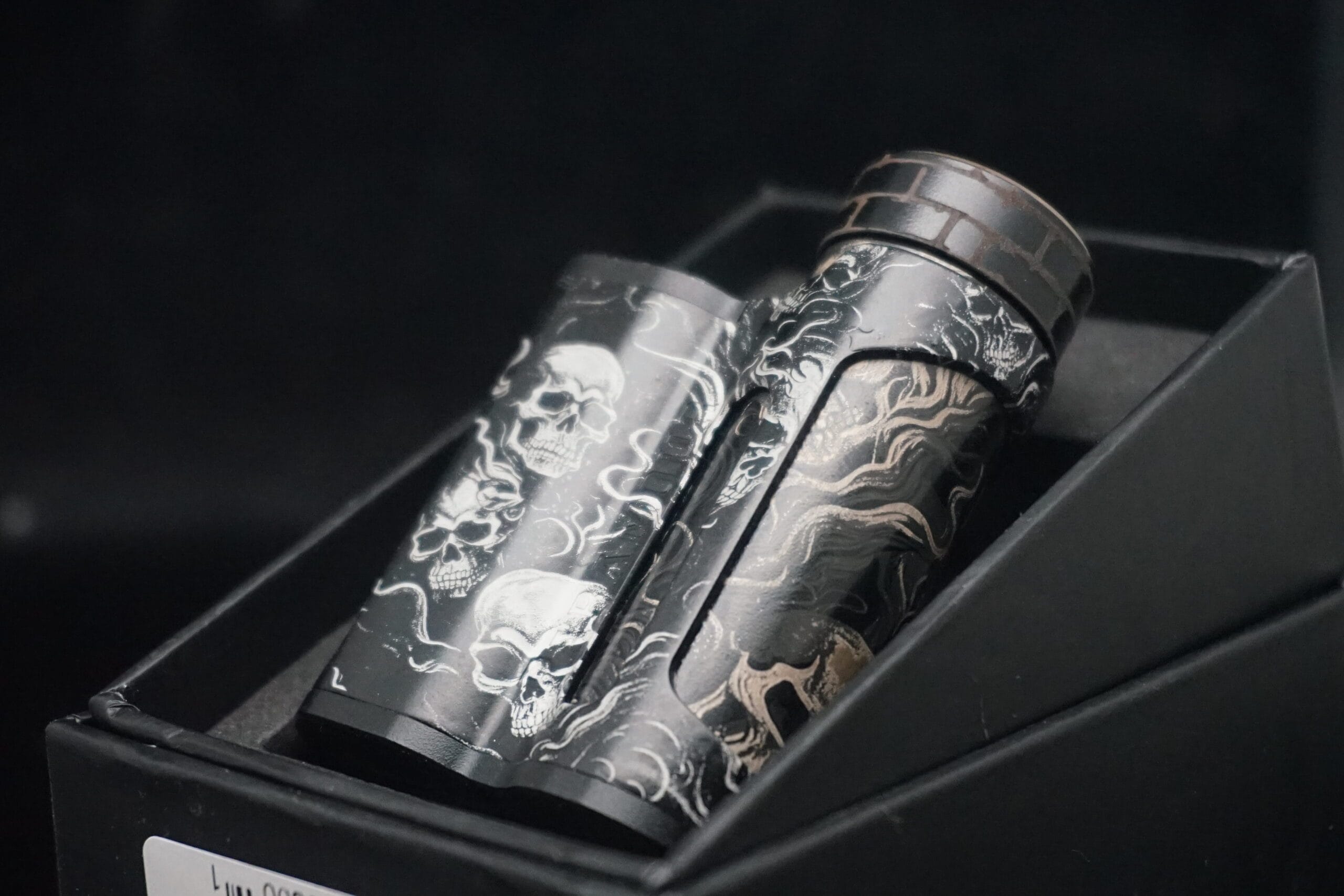 Nasce dalla volontà di trasformare una box elettronica di alto livello in una creazione dal linguaggio estetico forte, oscuro e perfettamente riconoscibile. La base tecnica è quella della Paramour DNA 80C, apprezzata per la sua ergonomia, per la qualità costruttiva e per l’affidabilità del circuito DNA, ma in questa versione il vero protagonista diventa il lavoro artistico eseguito sulla superficie.