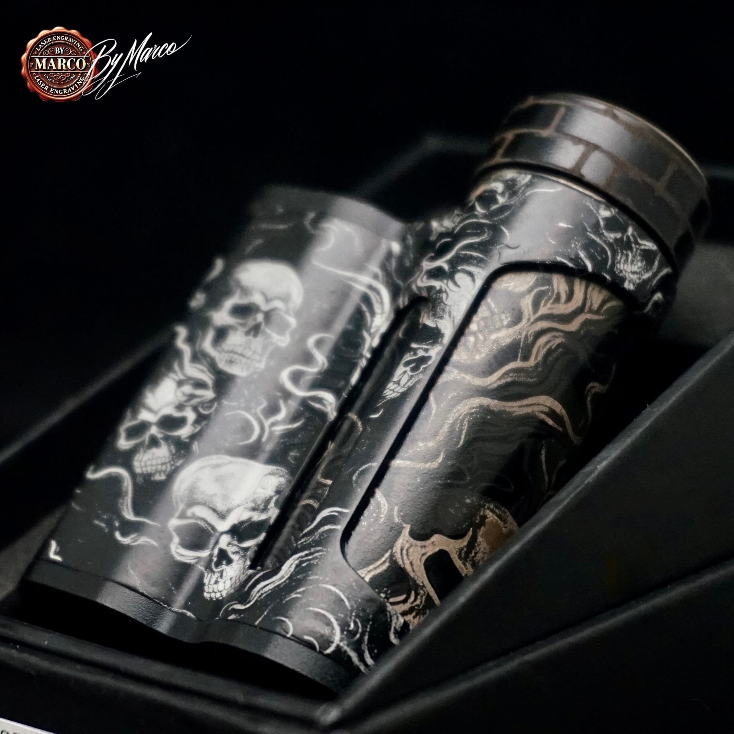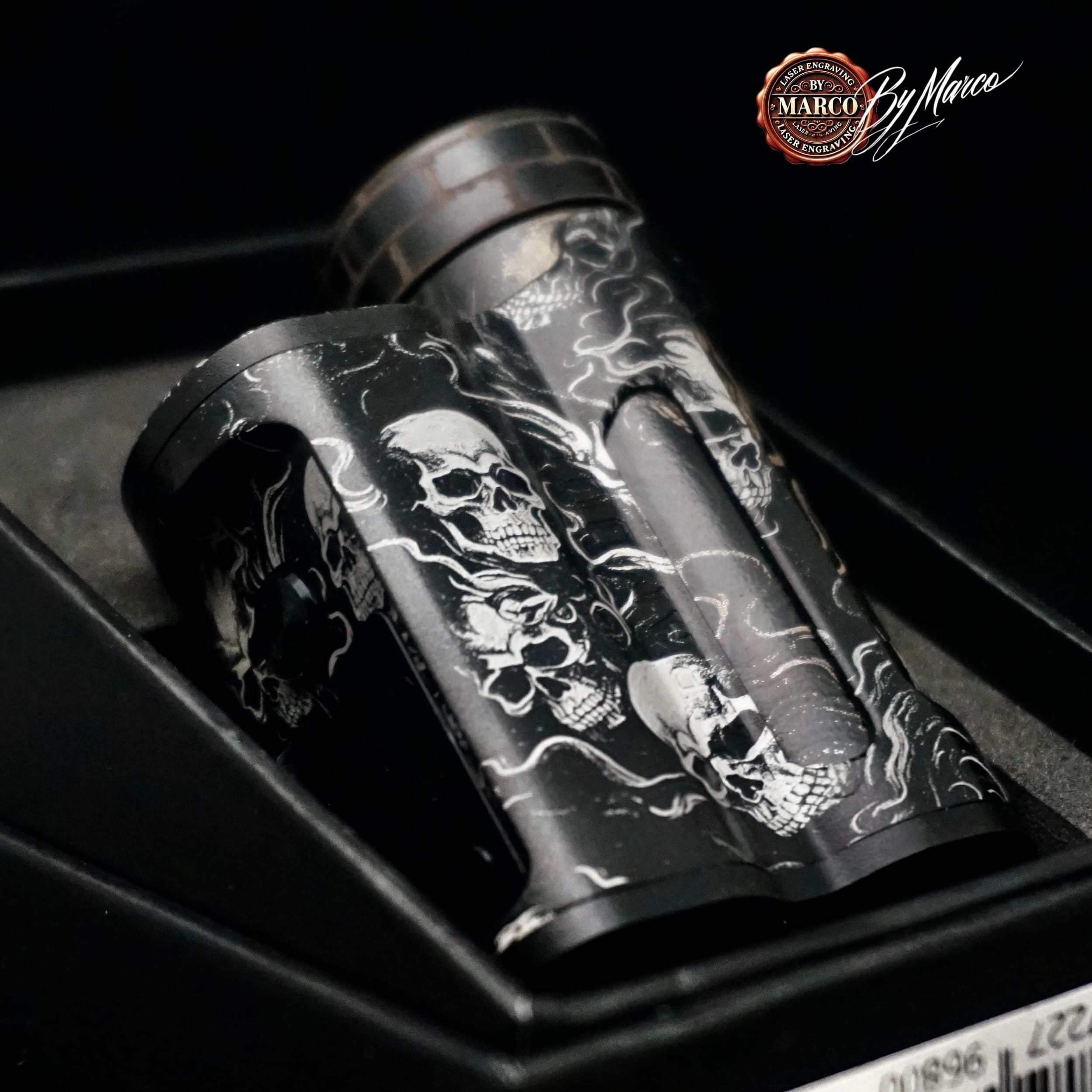 Il forte impatto di questa Paramour ArtBox deriva proprio dal bilanciamento tra superfici scure e incisioni luminose. I teschi risultano marcati e protagonisti, mentre il fumo crea collegamento tra le figure e amplifica la sensazione di fluidità. L’insieme non appare mai statico: cambia con la luce, con l’inclinazione e con il punto di vista, valorizzando il lavoro manuale e la ricerca estetica che stanno dietro alla realizzazione.