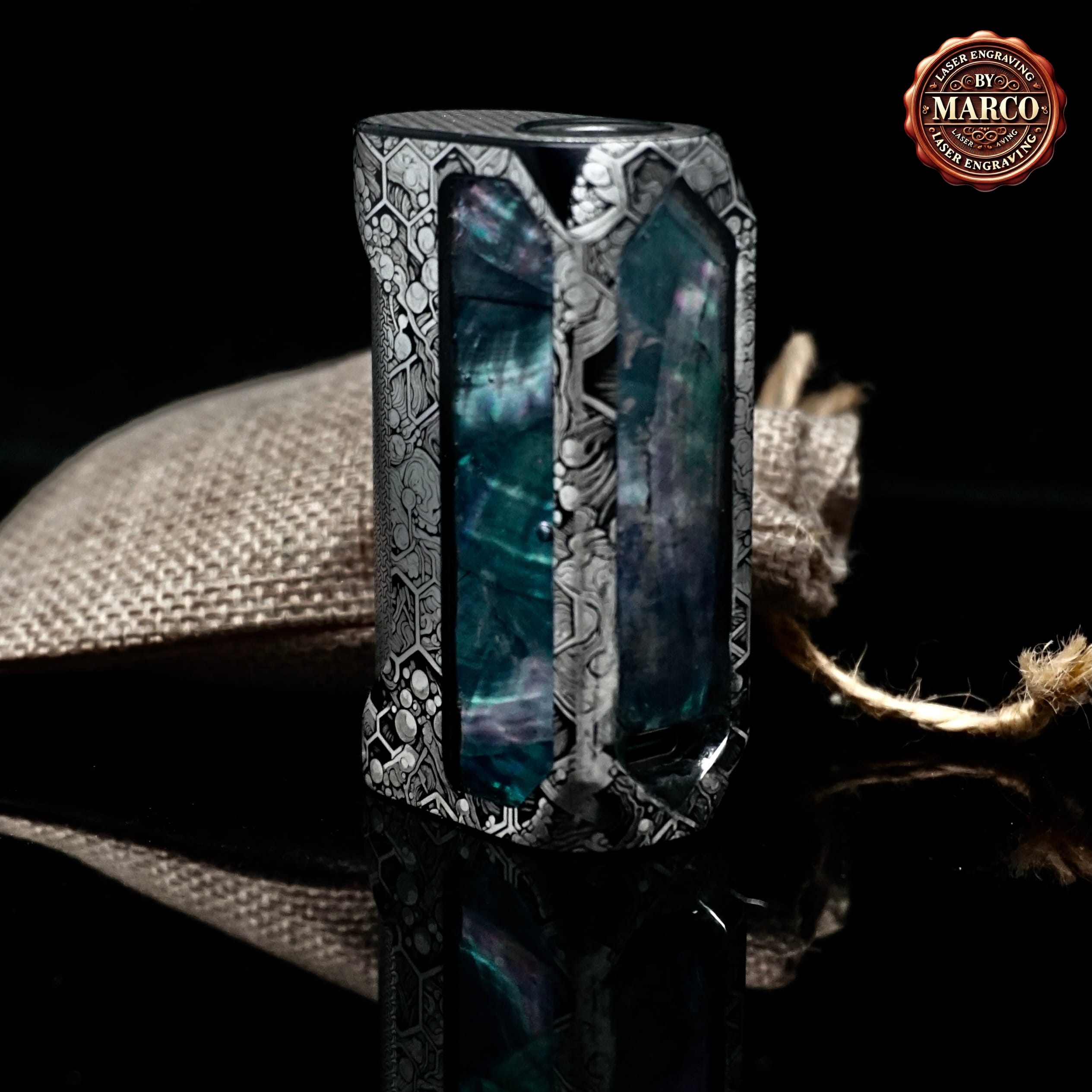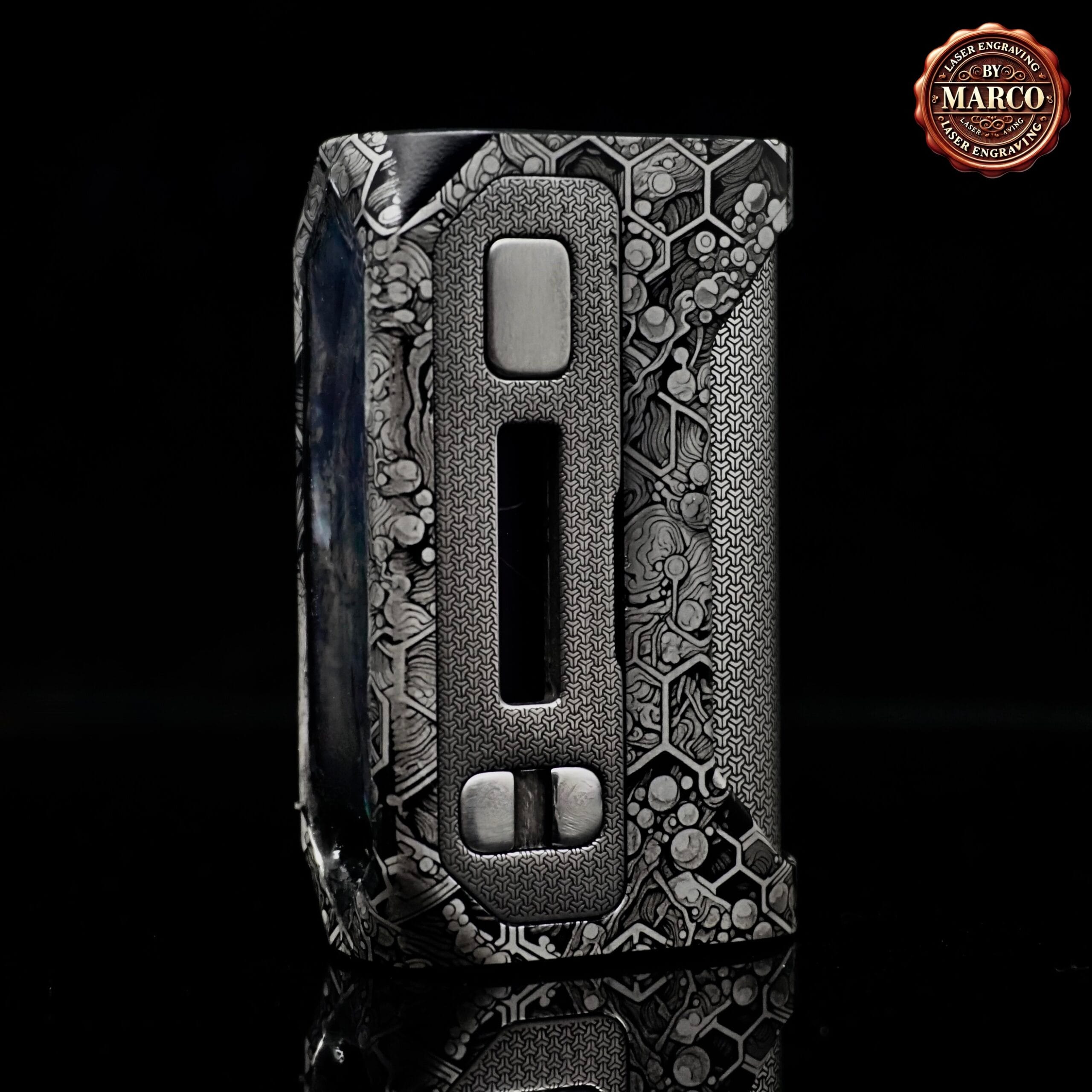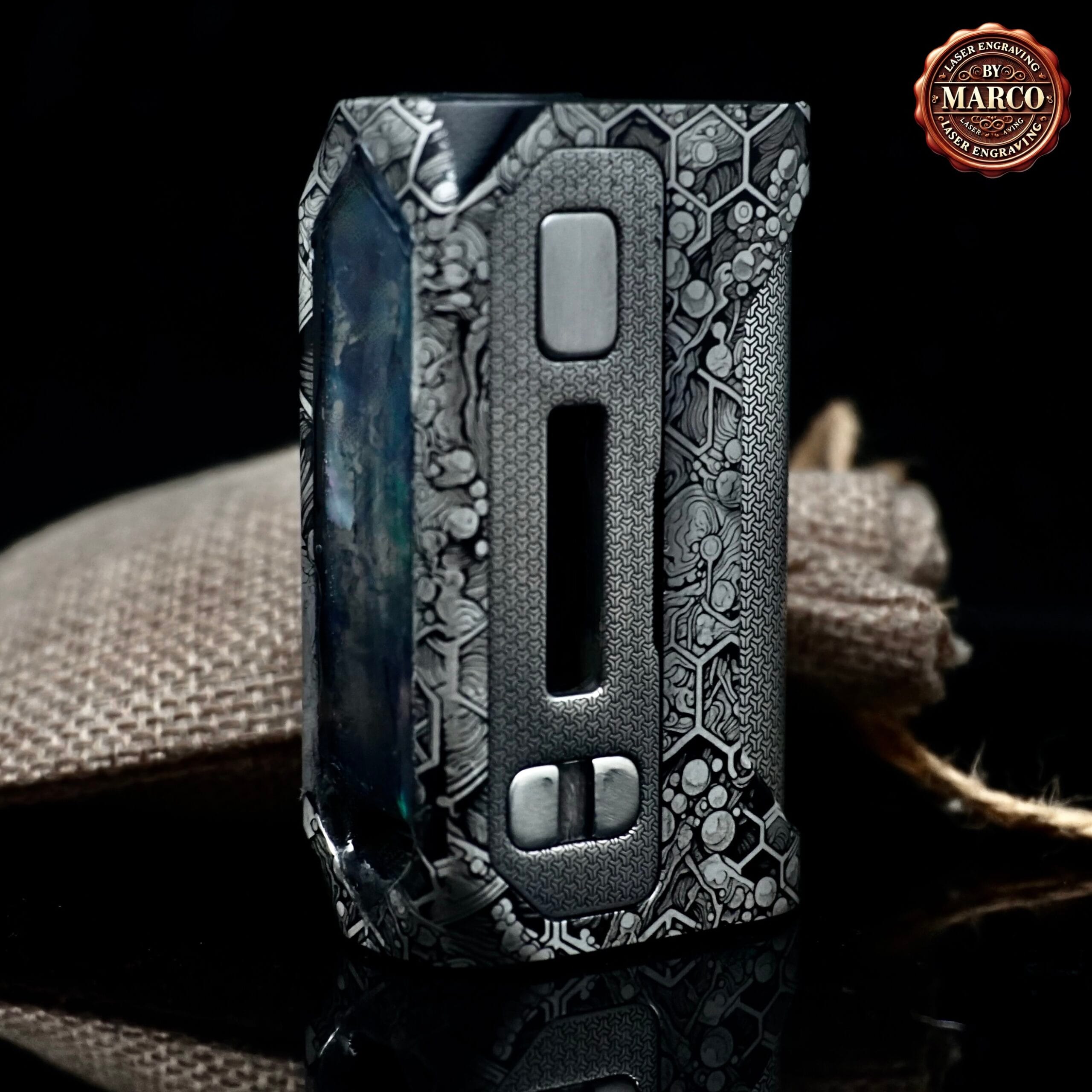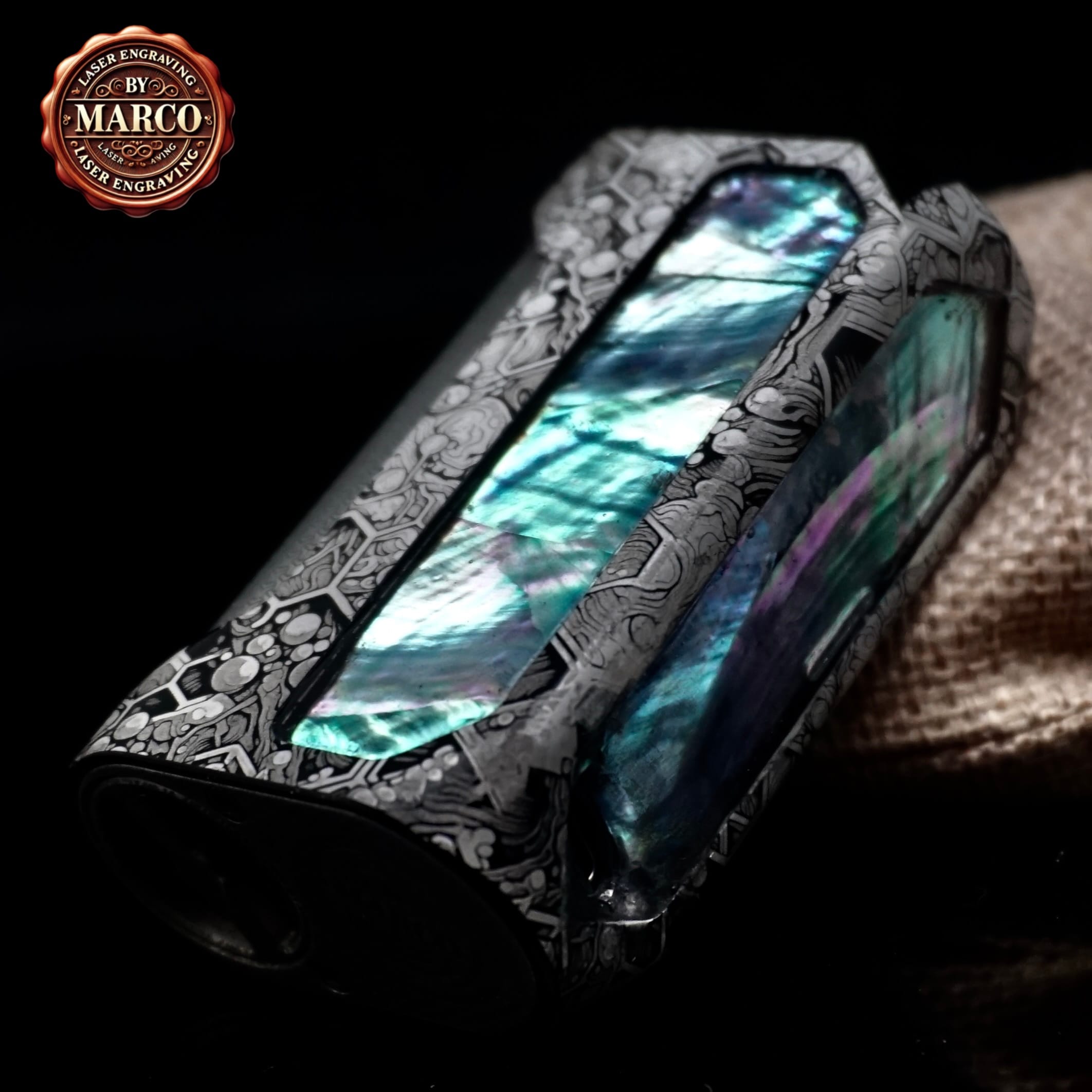 Una reinterpretazione totale della Blade 60 firmata ArtBox By Marco: incisione 3D profonda su tutta la scocca, pannelli in madreperla incastonata dall’effetto cangiante e finiture manuali di livello gioiello. Un pezzo unico, dove artigianato e tecnologia si fondono in una box elettronica esclusiva e irripetibile.