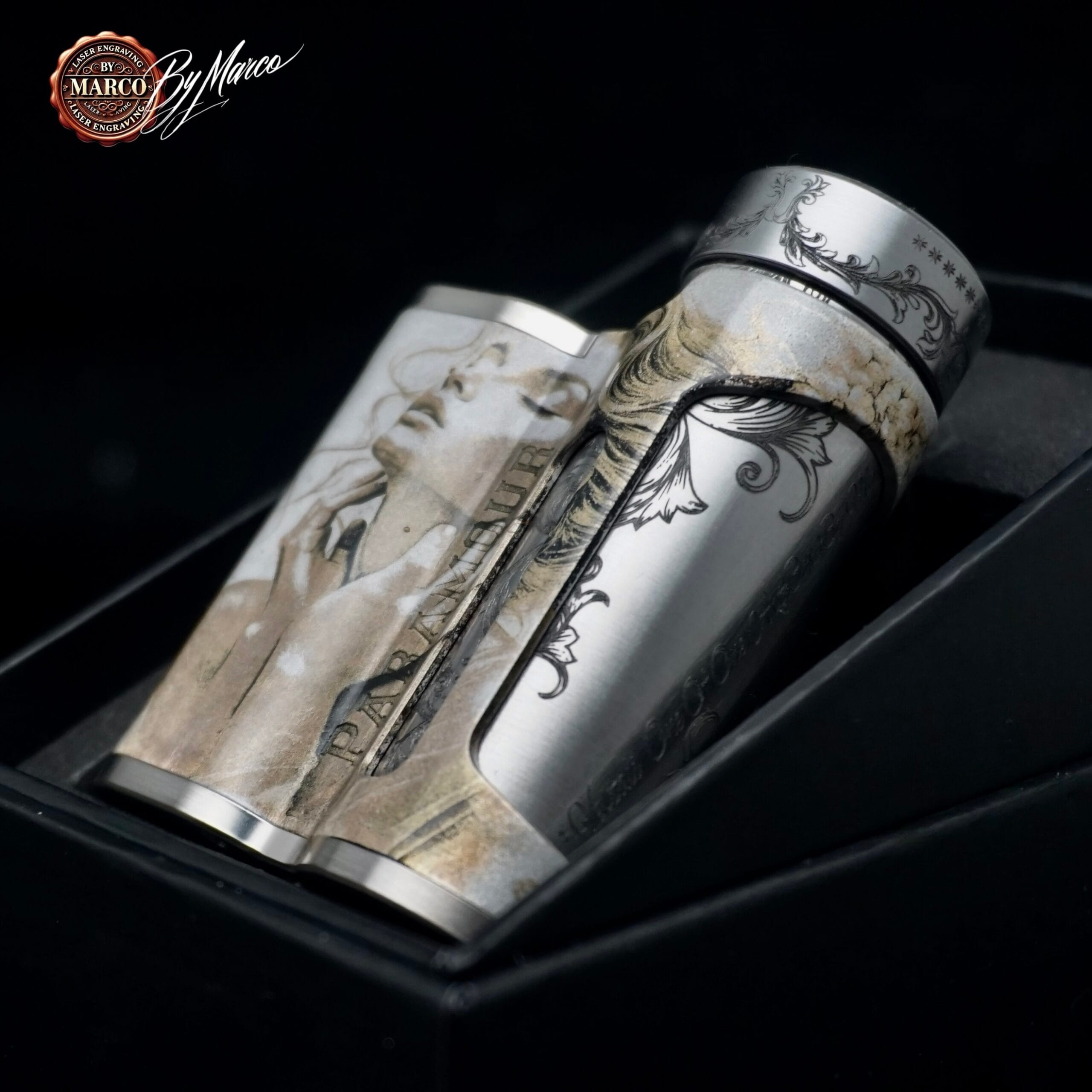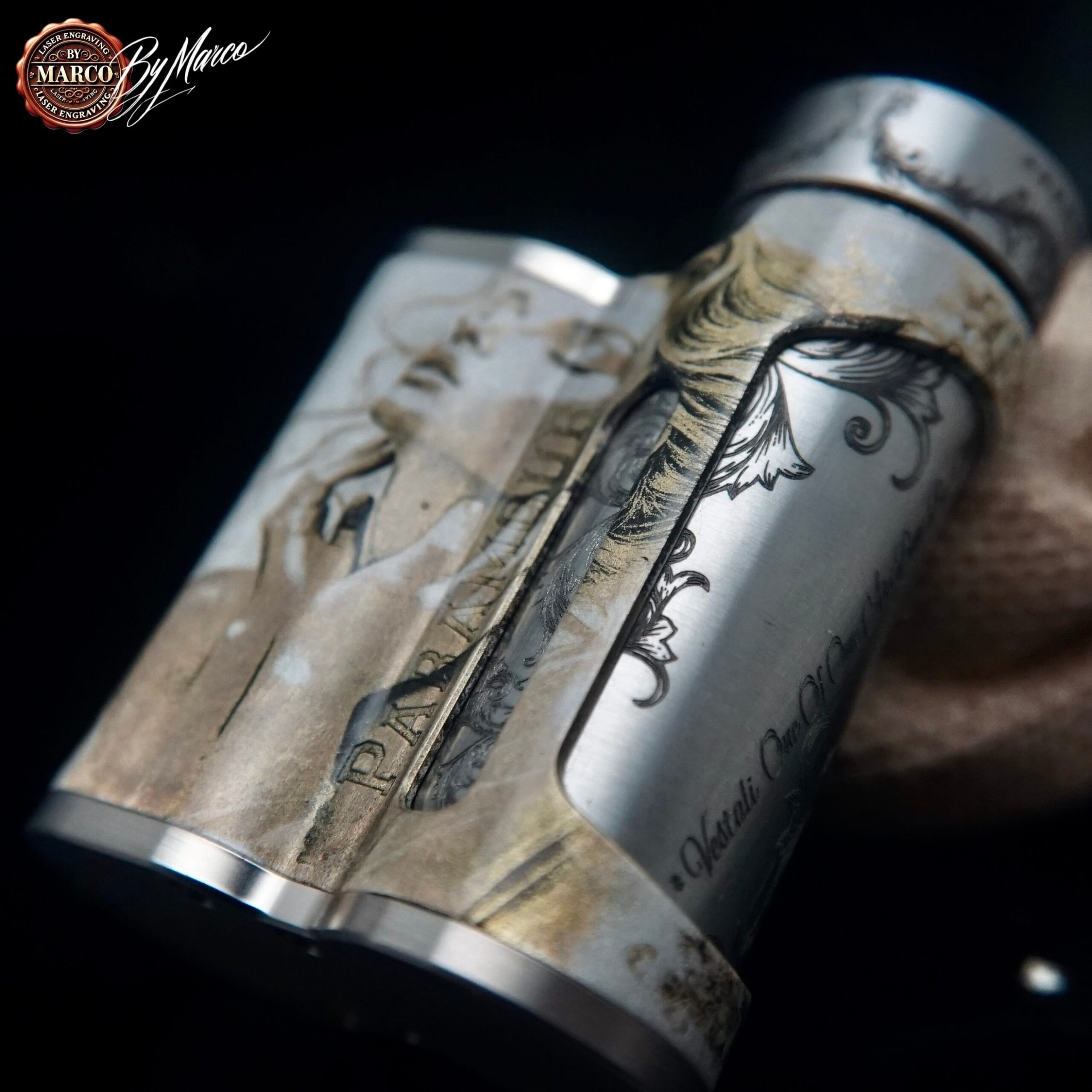 La Paramour DNA 80C “Velvet Relic” ArtBox By Marco è una creazione artigianale nata con un’idea precisa: non realizzare semplicemente una box incisa, ma trasformare una Paramour in un oggetto che sembrasse arrivare dal passato.